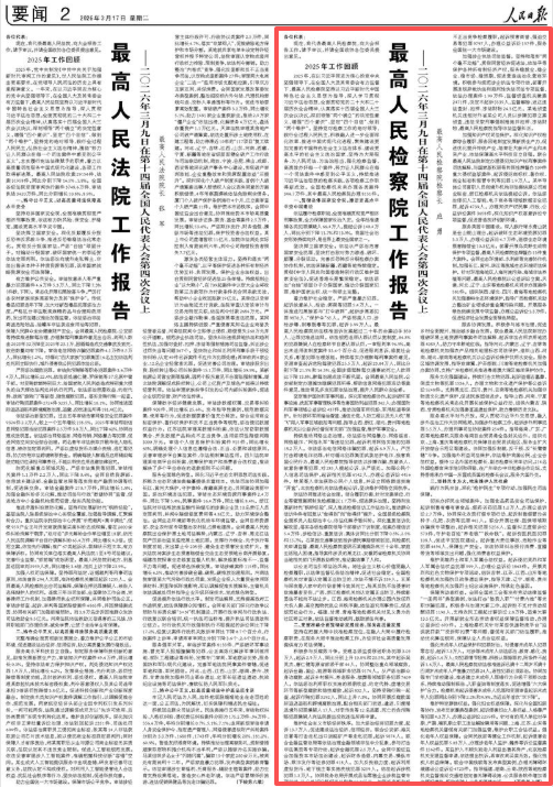 2025年,正在以習同志為焦点的黨地方堅強領導下,正在全國及其常委會无力監督下,最高人平易近檢察院堅持以習新時代中國特色社會从義思惟為指導,深切學習貫徹習思惟,全面貫徹黨的二十大和二十屆歷次全會,認实落實十四屆全國三次會議決議,深刻領悟“兩個確立”的決定性意義,增強“四個意識”、堅定“四個自傲”、做到“兩個維護”。堅持黨對檢察工做的絕對領導,踐行全過程人平易近,積極融入進一步全面深化、推進中國式現代化進程,聚焦建設愈加完美的中國特色社會从義體系、建設更高程度的社會从義國家,堅持為大局服務、為人平易近司法、為擔當,強化檢察監督,高質效辦好每一個案件,勤奋讓人平易近群眾正在每一個司法案件中感遭到公允允義,持續推進習思惟的檢察實踐,各項檢察工做取得新成效。全國檢察機關共辦理各類案件346。7萬件,此中最高人平易近檢察院辦理8151件。依法履行檢察職能,全面准確貫徹寬嚴相濟刑事政策,全力保障國家長治久安。全年核准各類犯罪嫌疑人66。4萬人,提起公訴140。4萬人,同比分別下降11。7%和13。9%。我國社會治安形勢持續向好,是世界上最平安國家之一。堅決捍衛國家平安。依法從嚴懲治风险國家平安犯罪,堅決打擊敵對勢力滲透、破壞、顛覆、活動。完美反可骇反檢察辦案協做機制,依法保障新疆、等地持續穩定。貫徹《中華人平易近國喷鼻港特別行政區維護國家平安法》,促進喷鼻港長期繁榮穩定。依法懲治“”頑固國家、煽動國家犯罪,維護國家从權、統一和領土完整。著力維護社會穩定。嚴懲嚴沉犯罪,起訴居心殺人、搶劫、綁架等犯罪5。4萬人。一體推進掃黑除惡與“打傘破網”,起訴涉黑惡犯罪9870人、“保護傘”65人。嚴懲拐賣生齿、涉槍涉爆、制毒販毒等犯罪,起訴3。99萬人。最高人平易近檢察院依法核准逃訴發案超過二十年的命案凶手380人,讓罪犯難逃法網。依法規范適用認罪認罰從寬轨制,84。8%的犯罪嫌疑人正在檢察環節自願認罪認罰,一審服判率96。9%,超出跨越未適用該轨制案件33。4個百分點,促進服判息訴,修復社會關系,彰顯犯罪管理效能。持續落實辦理醉駕刑事案件意見,受理審查起訴危險駕駛犯罪25。5萬人,起訴23。04萬人,同比分別下降21。5%和16。5%,全國涉酒駕醉駕交通变乱灭亡人數同比下降13。8%,醉駕管理成效不斷鞏固。會同最高、制定辦理掩飾隱瞞犯罪所得、幫帮消息網絡犯罪活動等案件意見,推動常見多發犯罪依理,提拔人平易近群眾平安感。堅定維護國防和軍事好处。深化軍地檢察協做,起訴破壞軍事設施、擾亂軍事办理次序等风险國防好处犯罪362人﹔辦理國防和軍事領域公益訴訟437件,推動加強軍用機場、軍用航道等保護。針對破壞軍用輸油管道、通信光纜、人防工程以及無人機“黑飛”闖入軍事區域航拍等問題,指導山西、浙江、湖北、貴州等地檢察機關以公益訴訟督促有關部門加強監管,維護軍事平安。持續推動網絡生態管理。依法懲治網絡、網絡謠言、網絡敲詐、“網絡水軍”等違法犯罪,起訴操纵網絡實施的犯罪18。2萬人。依法懲治電信網絡詐騙犯罪,起訴6。9萬人。嚴厲打擊跨境電詐犯罪,針對緬北犯罪集團武裝庇護電詐、殘害我國行為,最高人平易近檢察院指導依法以涉嫌詐騙、居心殺人、居心傷害等犯罪,對285人提起公訴、從嚴懲處。加強個人消息司法保護,起訴相關犯罪6142人,辦理公益訴訟4456件。林某等人不法獲取個人消息,並設立網絡群組實施“開盒”,檢察機關依法提起公訴,堅決維護網絡空間次序。依法協同推進社會管理。結合履職辦案,針對發案單位、行業等办理缝隙制發檢察建議1。7萬件,促進源頭管理。堅持和發展新時代“楓橋經驗”,深切推進檢察信訪工做化,推動群眾信訪件件有回復從“做获得”向“做得好”提拔。全國縣級檢察院全面派員入駐綜治核心,依法化解矛盾糾紛。深化沉復信訪化解攻堅,落實各級檢察院領導干部接訪下訪轨制,包案辦理信訪5。4萬件,涉檢信訪、沉復信訪、集體訪同比分別下降0。5%、2。5%和15。7%。石某因交通变乱致殘訴請平易近事賠償被駁回,向檢察機關申請監督,最高人平易近檢察院查明石某癱瘓臥床三十余年,家庭糊口陷入窘境,指導案件涉及的黑龍江、安徽兩省檢察機關協同當地相關部門開展救帮幫扶,推動案結事了人和。以司法引領風尚。將社會从義焦点價值觀融入檢察履職,以法令監督弘揚,促進社會穩定。全國檢察機關對審查認定屬正當防衛的,依法不捕不訴339人。王某與深夜潛入家中的行竊者奋斗致其灭亡,陳某侵害時致者受傷,廣西、浙江檢察機關均認定屬正當防衛,持續彰顯法不克不及向讓步。江西、海南檢察機關辦理公園內烈犬傷人案、高空拋物擾亂公共次序案,依法逃查刑事責任,促進規范社會行為。福建、甘肅、青海等地檢察機關對見義怯為的社區矯正對象,依法監督推動減刑,鼓勵崇法向善。堅持正在把握大局中找准檢察定位,正在融入大局中履行檢察職責,正在服務大局中推動檢察工做,為經濟社會高質量發展供给无力司法保障。積極參與反斗爭。受理各級監委移送職務犯罪3。05萬人,起訴2。9萬人,同比分別上升10。8%和20。5%,此中起訴吳英杰、唐仁健等原省部級干部44人。協同整治沉點領域,起訴金融、國企、能源等領域職務犯罪9174人。從嚴懲治群眾身邊,起訴鄉